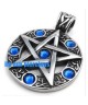 Pendentif cercle et croix pentagramme strass bleu ou rouge en étain, 35 mm de diamètre. Cordon noir 50cm .