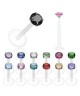 Piercing labret bioflex rond broche acier strass 2 2.5 3 mm contour levre, tige 1.2x8mm, strass blanc