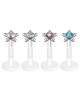 Bijoux percage corporel contour de bouche. Piercing pour le labret, levre, centré, décalé, supérieur, inférieur, tragus, oreille, cartilage, lobe, stud, madonna, médusa tige 1.2 x 8mm bio flexible teflon acrylique Transparent, embout 3 mm de diamètre, en acier chirurgical 316l. Embout étoile plate. Bijoux strass discret au centre. Bijoux de bonne qualité. Vendu à l'unité. Livraison en suivi.