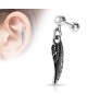 Piercing oreille tragus catilage lobe plume d ange strass blanc acier chirurgical 316l, tige 1.2x6mm