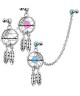 Le bijou se compose d'une pierre rattachée à une chaîne reliée d'une extrémité à l'autre avec un pendentif "attrape rêve". Strass blanc ou bleu aqua.