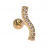 Piercing vague oreille couleur doré acier chirurgical 316L. Tige 1.2x6mm, boule 4 mm de diamètre, motif 15mm de longueur. Strass blanc.