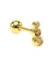 Piercing triple strass blanc oreille couleur doré acier chirurgical 316L. Tige 1.2x6mm, boule 3 mm de diamètre. motif 7 mm de longueur.