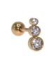 Piercing tragus cartilage lobe triple strass blanc 4 3 2 mm, acier chirurgical 316L. Boule 4 mm de diamètre. Couleur doré.