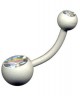 Piercing nombril ventre double strass blanc acier chirurgical 316l, tige 1.6x8mm, 1.6x10mm, 1.6x12mm.