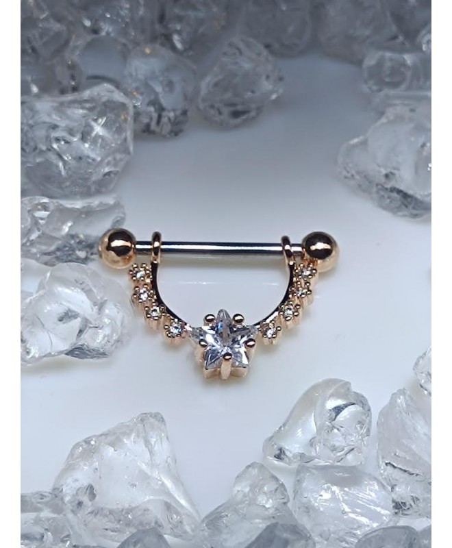 Piercing teton Boucle Anneau etoile Strass Blanc Couleur doré rose cuivre nipple sein boule