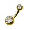 piercing nombril en acier chirurgical de couleur dore avec double strass blanc