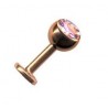 Piercing labret levre tragus acier chicurgical 316l couleur doré rose, tige 1.2x8mm, boule 3 mm de diametre strass blanc