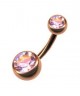 Piercing nombril acier chicurgical 316l couleur doré rose tige 1.6x10mm, double strass blanc