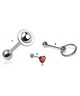 Piercing langue en acier chirurgical ovni, logo cœur ou Anneau Esclave tige 1.6x16mm.