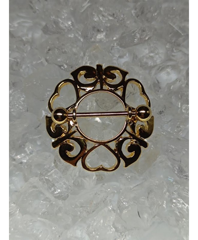 Piercing sein téton anneau bouclier avec decor coeur papillon mamelon nipple poitrine couleur doré