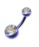 Piercing nombril double strass blanc acier chirurgical 316l, couleur violet, tige 1.6x 8mm, 1.6x10mm, 1.6x 12mm.