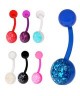 piercing nombril debut de grossesse tige bioflexible 1.6x10mm, avec paillettes, couleurs au choix, noir, rouge, rose, transparent avec paillette bleu aqua, violet, blanc, bleu