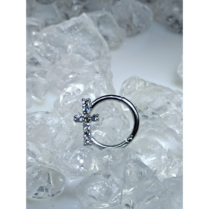 Piercing anneau clickers nez stud narine oreille lobe conch septum croix strass blanc helix daith septum