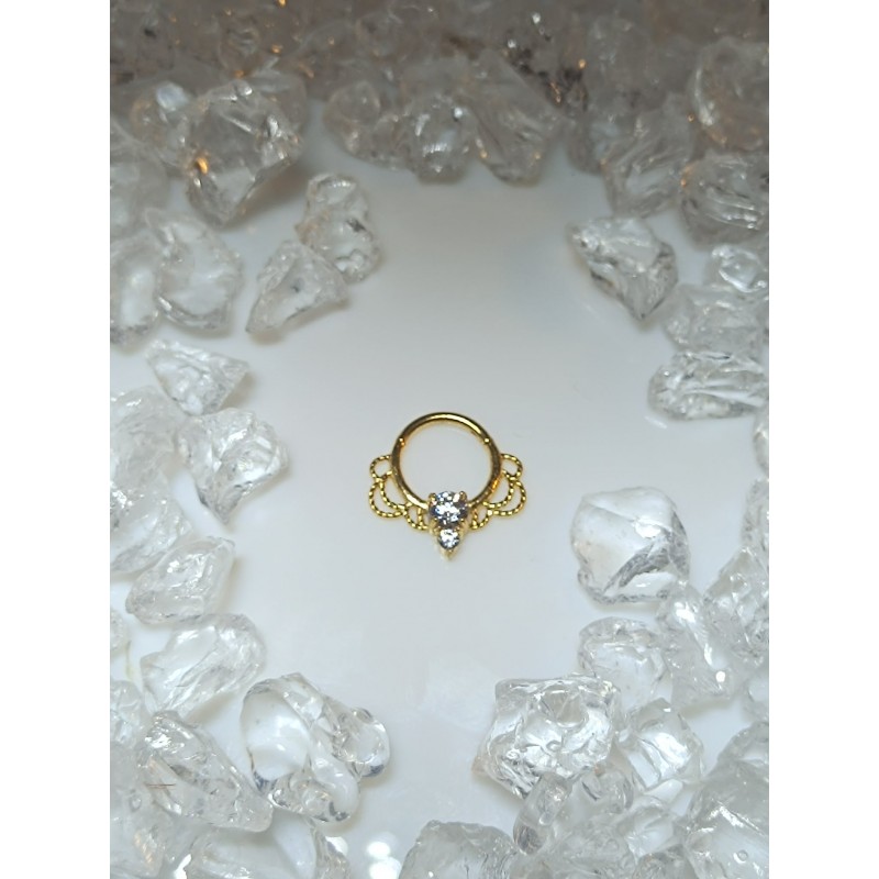 Piercing anneau clickers nez stud narine oreille lobe conch septum helix multi filigrame strass blanc daith septum couleur doré