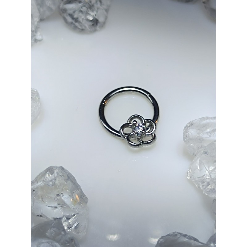 Piercing anneau clickers nez stud oreille lobe conch bijou septum narine helix daith fleur strass blanc septum