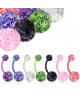 Piercing nombril avec paillette brillant tige 1.6x10mm en acrylique, couleurs aux choix, bleu, vert, rouge, noir, rose, violet, blanc