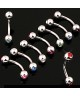 Bijou piercing arcade sourcil double strass 1.2x 8mm, boule 3 mm de diamètre. En acier chirurgical 316L.