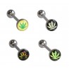 Lot 4 piercing langue feuille cannabis weed marijuana, tige 1.6 X 16mm, boule 6mm de diamètre, acier chirurgical 316L