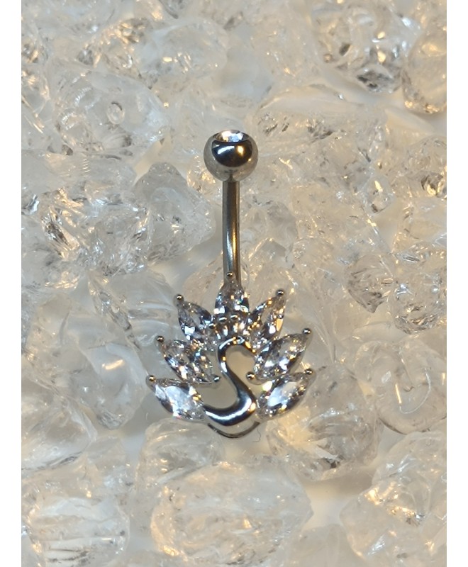 Piercing paon animal aile bijoux nombril navel strass blanc ombligo umbigo