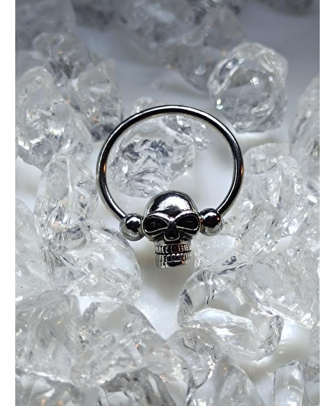 Piercing anneau captif avec tête de mort perlée teton poitrine