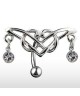 Piercing nombril tribal inversé avec double strass pendant