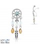 Piercing nombril attrape capteur de reve plume disponible en strass bleu aqua ou blanc imitation perle breloque inversé, tige 1.6x 10mm en acier chirurgical 316L. Jolie bjoux.