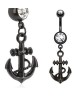 Piercing nombril pendant ancre de marine noir en acier chirurgical. Tige 1.6x10mm. strass blanc