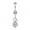 Piercing Nombril Pendentif Double cœur Rond Triple Strass Blanc