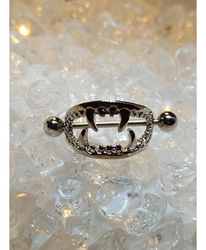 Piercing Mamelon dent de Vampire Morsure Sein Teton Gothique Punk Relief 3D Poitrine Bouclier