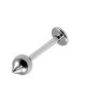 Piercing labret tragus titane boule toupie pointe, tige 1.2x8mm, embout : 4mm sur 4mm